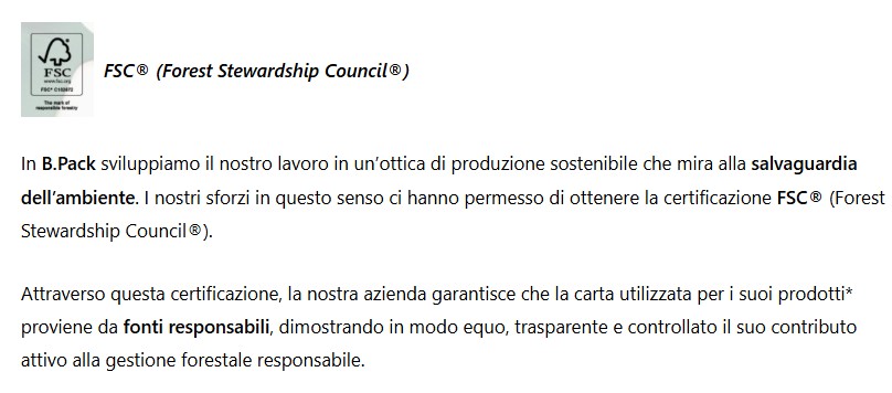 Attraverso questa certificazione, la nostra azienda garantisce che la carta utilizzata per i suoi prodotti* proviene da fonti responsabili, dimostrando in modo equo, trasparente e controllato il suo contributo attivo alla gestione forestale responsabile.