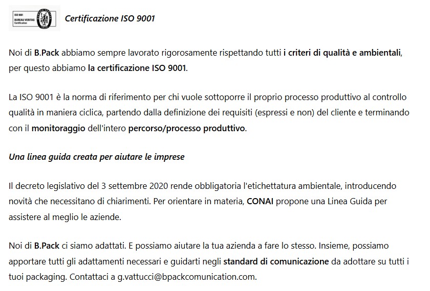 Noi di Beauty Pack abbiamo sempre lavorato rigorosamente rispettando tutti i criteri di qualità e ambientali, per questo abbiamo la certificazione ISO 9001.